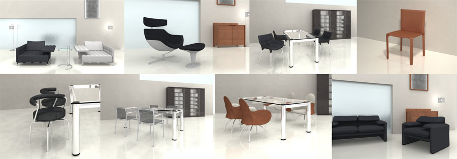 LIGHTINGDESIGNにて作成した多くのデータをご購入いただけます。 販売用データは通常パースで使用しているものとは別途に、じっくり作成 いたしました。worksのページでご覧になれるパースで使われている家具 とは全く別物、数段しっかり制作いたしました。データは全て strata 3D CX5.5以降でご利用いただけます。テクスチャも設定済みですので、 お買い上げ後すぐにご活用いただけます。主にベジェサーフェイスで 構成されていますので、大量に使用した場合もDXFのメッシュデータ等 を取り込んだ際のようなレスポンス低下も少なくなります。 データ形式は現在のところ、strata形式のみです。ご利用には別途、 STRATA 3D CX5.5以降が必要になります(MAC WIN両用)。